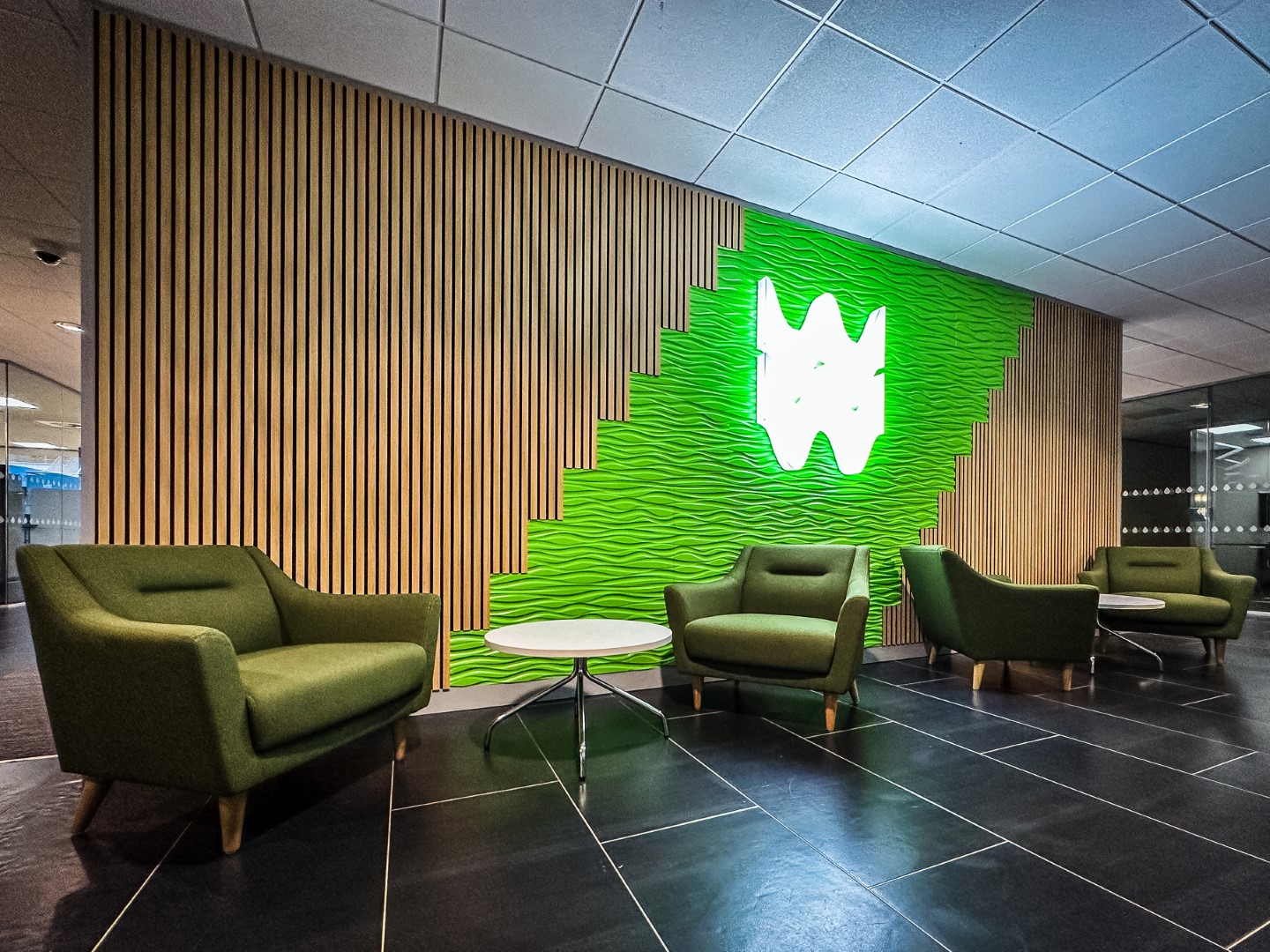 Beacons Business Interiors were commissioned to design and fit out Julian Hodge Bank’s new headquarters at One Central Square, Cardiff. Within the design, the client wanted to reflect the companies core values. The Design also featured a bespoke reception desk designed by the Bbi team.