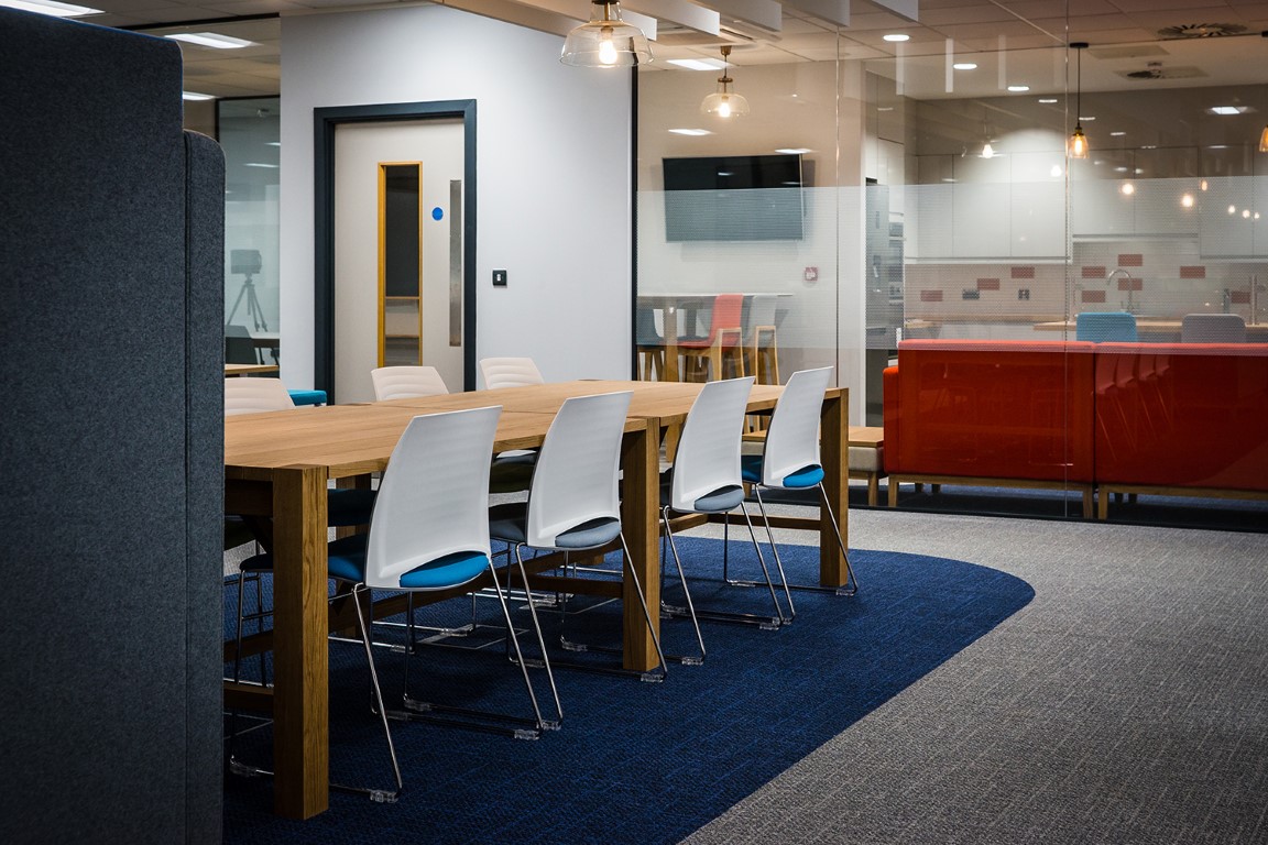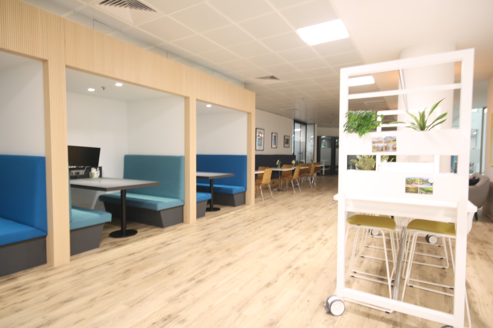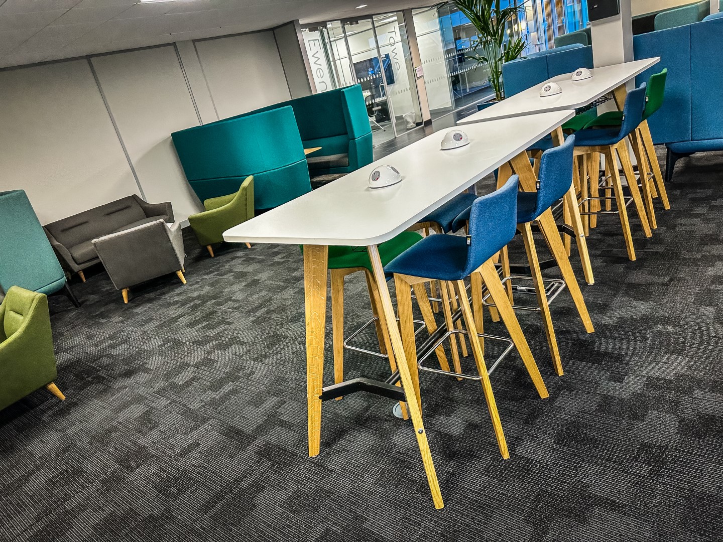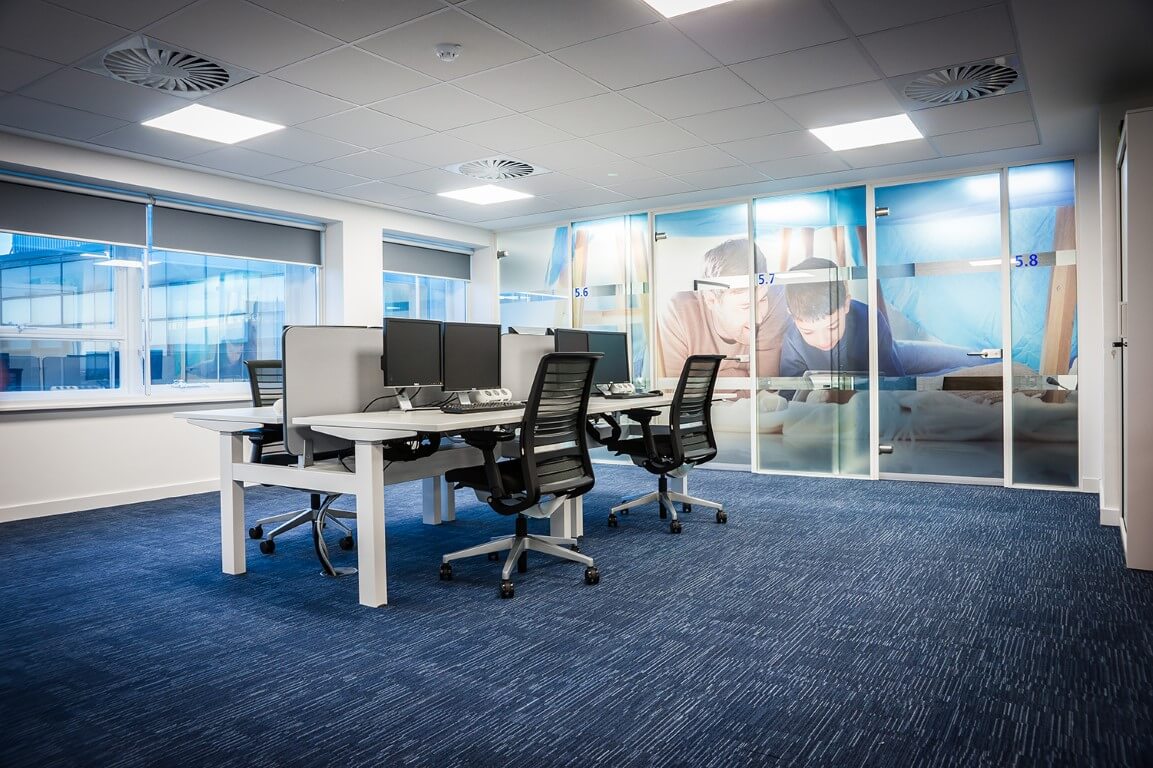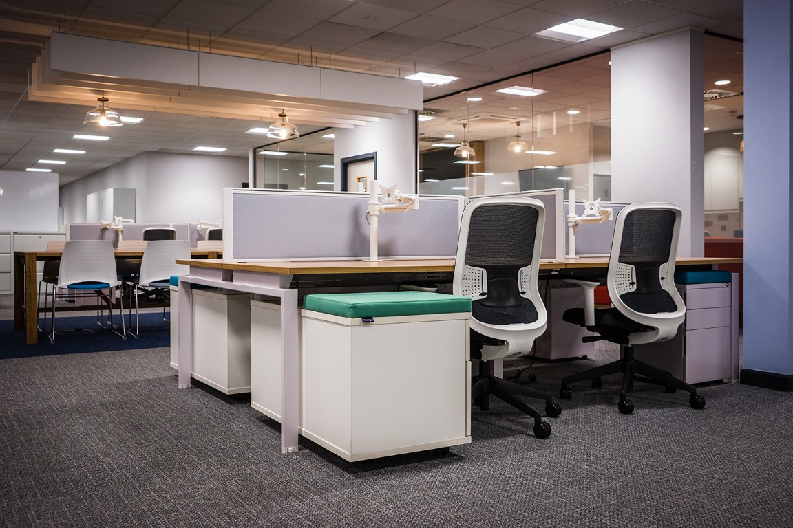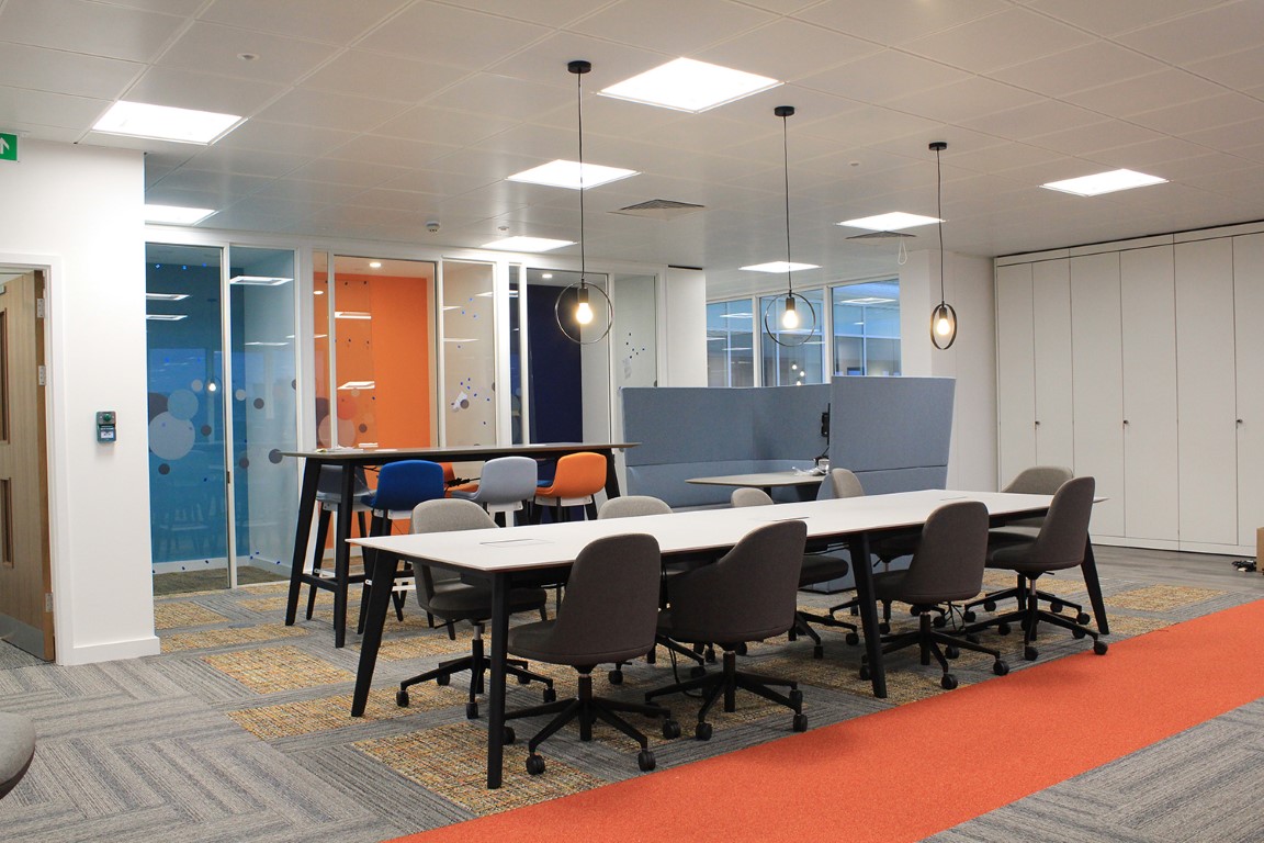 For Mitie’s Head Office Support team – create a modern working environment to combine two separate office sites in Bristol, onto a single floor of the old Cadbury’s Chocolate Factory on the outskirts of Bristol.